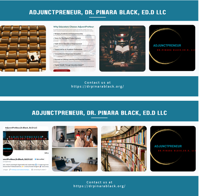 AdjunctPreNeur, Dr. Pinara Black, Ed.D LLC helps educators turn their academic knowledge into profitable, sustainable ventures. We specialize in guiding adjunct professors, instructors, and adult learners to leverage their teaching experience into scalable digital businesses. Through a combination of consulting, coaching, and digital strategy, we help clients transform their expertise into income-generating opportunities.